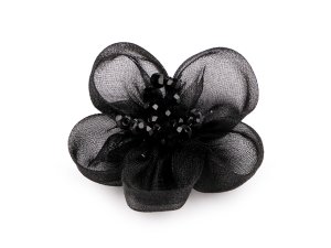 Romantický organzový květ s jemným třpytem je ve středu dozdobený propracovanými pestíky z broušených korálků.