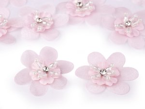 Romantický organzový květ s jemným třpytem je ve středu dozdobený propracovanými pestíky z broušených korálků.