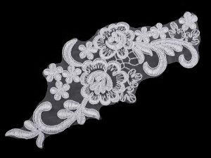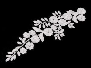 Krajková vsadka s květinovým motivem se skládá ze 2 dílů (levý a pravý díl).