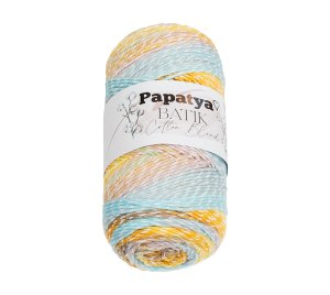 Příze PAPATYA COTTON BLEND batik materiál 70% Akryl, 30% Bavlna 100g / 225 m praní na 30°C jemný postup sušit v sušičce nedoporučujeme žehlit nedoporučujeme doporučená velikost jehlic č. 5 mm háček 3 …