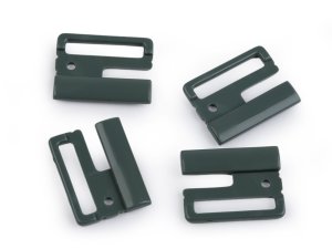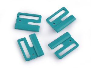 Kovové zapínání na plavky je složené ze dvou dílů a zapíná se vsunutím jednoho dílu mezi druhý díl.