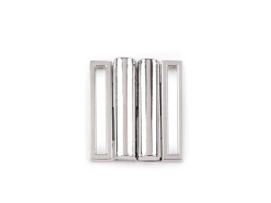 Kovové zapínání na plavky je složené ze dvou dílů a zapíná se vsunutím jednoho dílu mezi druhý díl.