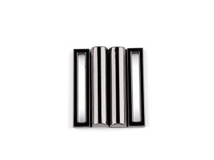 Kovové zapínání se skládá ze dvou dílů a zapnete ho vsunutím jednoho dílu mezi druhý.