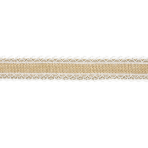 Jutovou stuhu zdobí po obou stranách romantická bavlněná krajka.