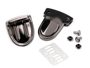 Zapínání na kabelku či tašku se skládá ze dvou dílů a plíšku.