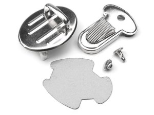 Zapínání na kabelku či tašku se skládá ze dvou dílů a plíšku.