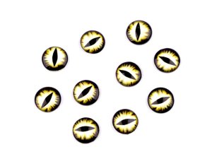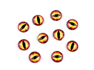 Kulaté skleněné oči s motivem kočičího / dračího oka mají kvalitní zpracování.