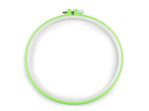 Malý vyšívací plastový kruh je opatřený kovovým stahovacím šroubkem, pomocí něhož přichytnete vyšívací tkaninu.