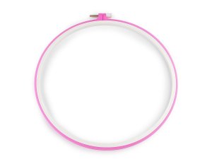 Vyšívací plastový kruh je pevný, opatřený kovovým stahovacím šroubkem, pomocí něhož přichytnete vyšívací tkaninu.