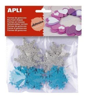 Pěnovka ve tvaru sněhových vloček v barevném mixu se třpytkami na povrchu.