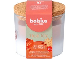 Vonná svíčka Bolsius True Joy Oriental Softness – orientálně kořeněná vůně s korkovým víčkem.