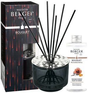 Sada obsahuje: Tyčinkový aroma difuzér černý 180 ml 8 kusů černých vonných tyčinek Náplň do difuzéru Velvet of Orient (Bouquet Recharge/Refill) 200 ml
