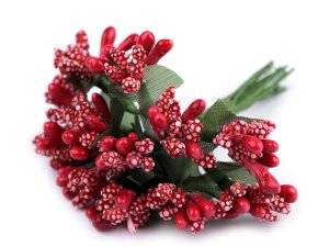 Bobulky drží na kovovém drátku, který je obalený floristickou páskou.