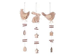 Dřevěný závěs srdce s ptáčkem v mixu barevného provedení 115x105mm
