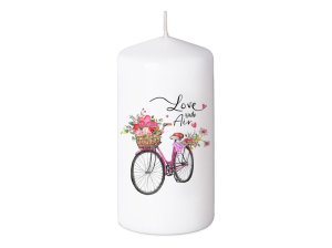 Válec svíčka Kolo Love is in the Air, v červené barvě 60x110 mm