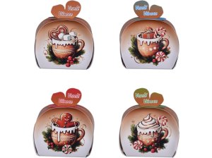 [Vánoční dárkový pytlík je z obou stran ozdobený potiskem sobů, stromečků a vloček.