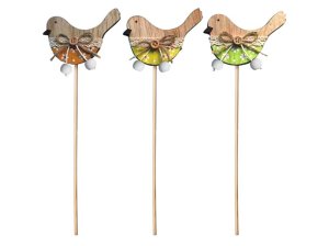 Dřevěný zápich v přírodní barvě, ptáček + špejle, mix barev 310 mm