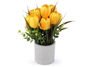 Umělé tulipány v květináči zútulní a rozjasní během jara a velikonočních svátků každý interiér.