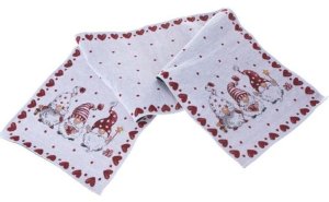 Elegantní běhoun na stůl s veselými skřítky krásně ozdobí vaši domácnost. 33 x 140 cm Prát při 30°Může se žehlit.