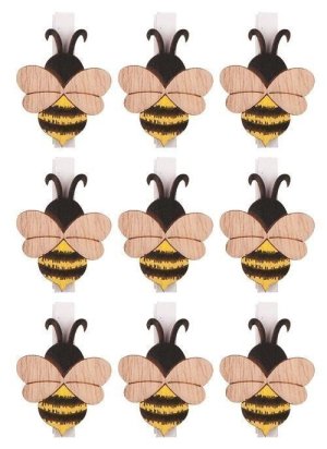 Včelka dřevěná na kolíčku 4,5 cm, 9 ks v sáčku