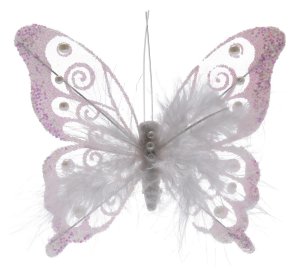 Dekorace MOTÝL 15,5 x 10 cm, PH / PEŘÍČKA, BÍ, klip (2 ks). rozměry: 15,5 x 10 cm materiál: plast + peříčka + třpytky + textil uchycení klipem balení: 2 ks Dekorace pro Váš interiér nebo vánoční …
