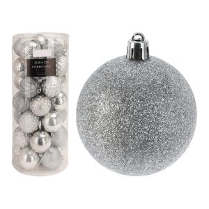 Ozdoba vánoční KOULE pr. 6 cm, STŘ mix (35 ks). průměr: 6 cm barva: stříbrná - mix odstínů v balení balení: 12 ks Balení obsahuje závěsné vánoční ozdoby KOULE, ve stříbrném provedení.