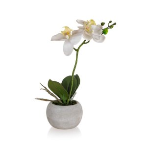 Orchidej v papírovém květináči 32 x 23 cm, bílá je umělá květina, která slouží jako náhrada živých rostlin a skvěle se hodí pro dekorování bytových prostor.
