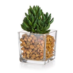 Sukulent ve skleněné váze s kameny 10 x 16 cm, zelený je umělá květina, která slouží jako náhrada živých rostlin a skvěle se hodí pro dekorování bytových prostor.