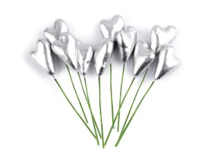Dekorační srdíčka jsou připevněná k ohebnému floristickému drátku.