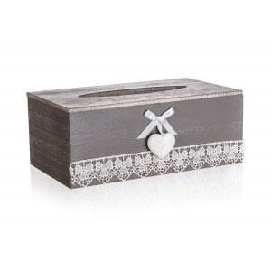 Krabička s krajkou na papírové kapesníčky 24 x 14,5 x 9,5 cm LACEWORK, oválný otvor je vybavena otvíracím víkem na doplnění kapesníčků.