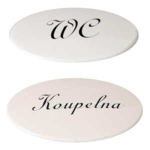 materiál: plast bílý Sada dveřních štítků s popisem WC + KOUPELNA slouží k označení dveří bytového jádra.