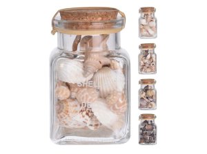 Svícen závěsný ze skla a juty o rozměru 14 x 18 cm.