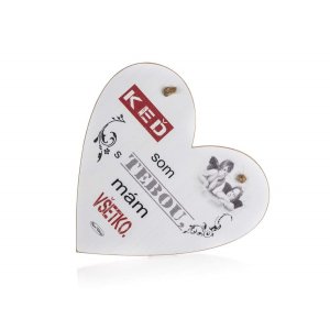 Tabulka dřevěná s nápisem SK ve tvaru srdce o rozměu 22 x 21 cm.