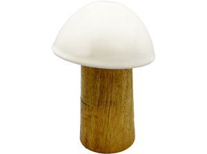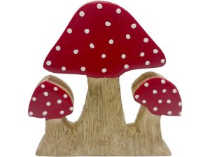 Dřevěné muchomůrky na postavení, přírodní vzhled.