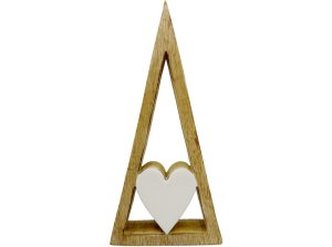 Stylová dřevěná dekorace na postavení – srdce v geometrickém rámu.