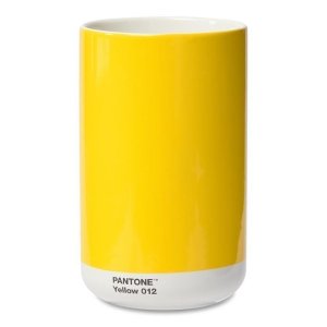 Keramická váza ve tvaru lahve je ozdobena vodorovnými drážkami po celém obvodu.