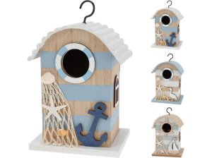Barevná dřevěná budka s mořským motivem – dekorace na zavěšení pro letní či celoroční aranžmá.