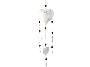 Kovový závěs s motivem bílých srdíček – romantická dekorace na zeď nebo dveře.