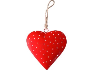 Kovové srdce na zavěšení – výrazný červený akcent do interiéru.