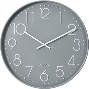 klasické nástěnné hodiny na baterii AA kombinace skla a plastového rámu v metalické šedé barvě vhodné do prostorných interiérů výrazný a dobře viditelný ciferník kvalitní Quartz mechanismus výška číslic: …