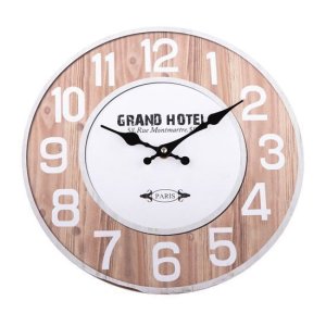 Nástěnné hodiny Napájení z baterie Rozměry 320 MM Pouzdro ve tvaru kruhu Plastové pouzdro Hnědá barva pouzdra Ručičkový ciferník Bílá barva ciferníku Ciferník s arabskými čísly