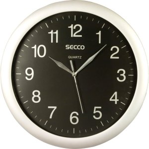 Nástěnné hodiny Napájení z baterie Rozměry 250 MM Pouzdro ve tvaru kruhu Plastové pouzdro ČERNÁ barva pouzdra Ručičkový ciferník Bílá barva ciferníku Ciferník s arabskými čísly