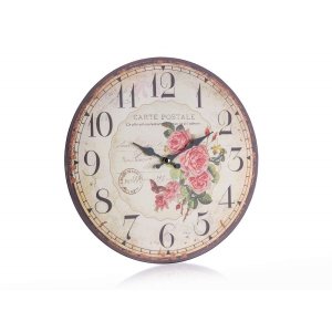 Nástěnné kulaté hodiny CARTE POSTALE s celoplošným dekorem o průměru 34 cm.