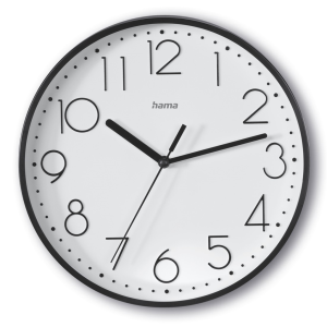 Klasické analogové nástěnné hodiny Velmi dobře čitelné díky velkým černým číslicím na bílém podkladu Tichý chod bez tradičního tikotu Dvě černé ručičky a jedna červená vteřinová Průměr hodin 30 cm Ochranné …