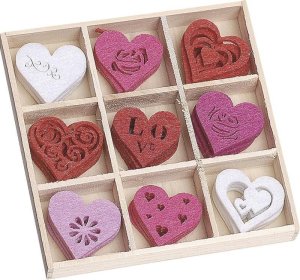 9 ks dřevěných dekorací k výrobě např. svatebního přání či svatebního oznámení.