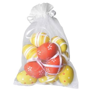 Kraslice 6 ks, 60 mm, různé vzory v organzovém sáčku, mix barev.
