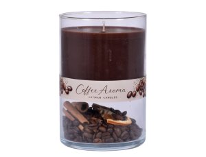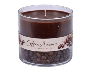 Dekorativní vonná svíčka ve skle s vůní čerstvě mleté kávy vytváří příjemnou a hřejivou atmosféru.