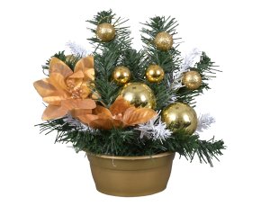Vazba z umělých květin. Aranžmá z umělých květin imitujících vánoční hvězdy je umístěna v nízké nádobě.