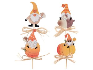 Dřevěný zápich 50 mm se špejlí – skřítci s dýněmi, barevný mix.