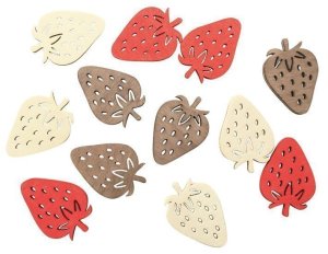 Dřevěné jahody jsou určeny k vytváření dekorací.